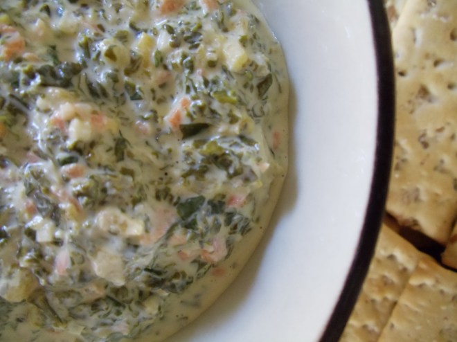 I love kale! I love that Farmer Kenny has crops and crops of it! There are times, however, when I daydream that I have a secret life as the New York Times bestselling cookbook author of Fifty Shades of Kale. In this popular tome, kale is transformed from a staple in soups, smoothies and “hand-massaged raw salads” and turned into something surprising. Fifty totally unique recipes, not a kale chip in the bunch. When I saw that Trader Joe’s had a “reduced guilt” Spinach & Kale Greek Yogurt Dip, I thought, “Wow, that’s different!” I had a of parcel of kale in my cold drawer at home, so I did what any sneaky creative home cook would do…I took a photo of the ingredient label and bought what I needed to copycat the recipe at home.