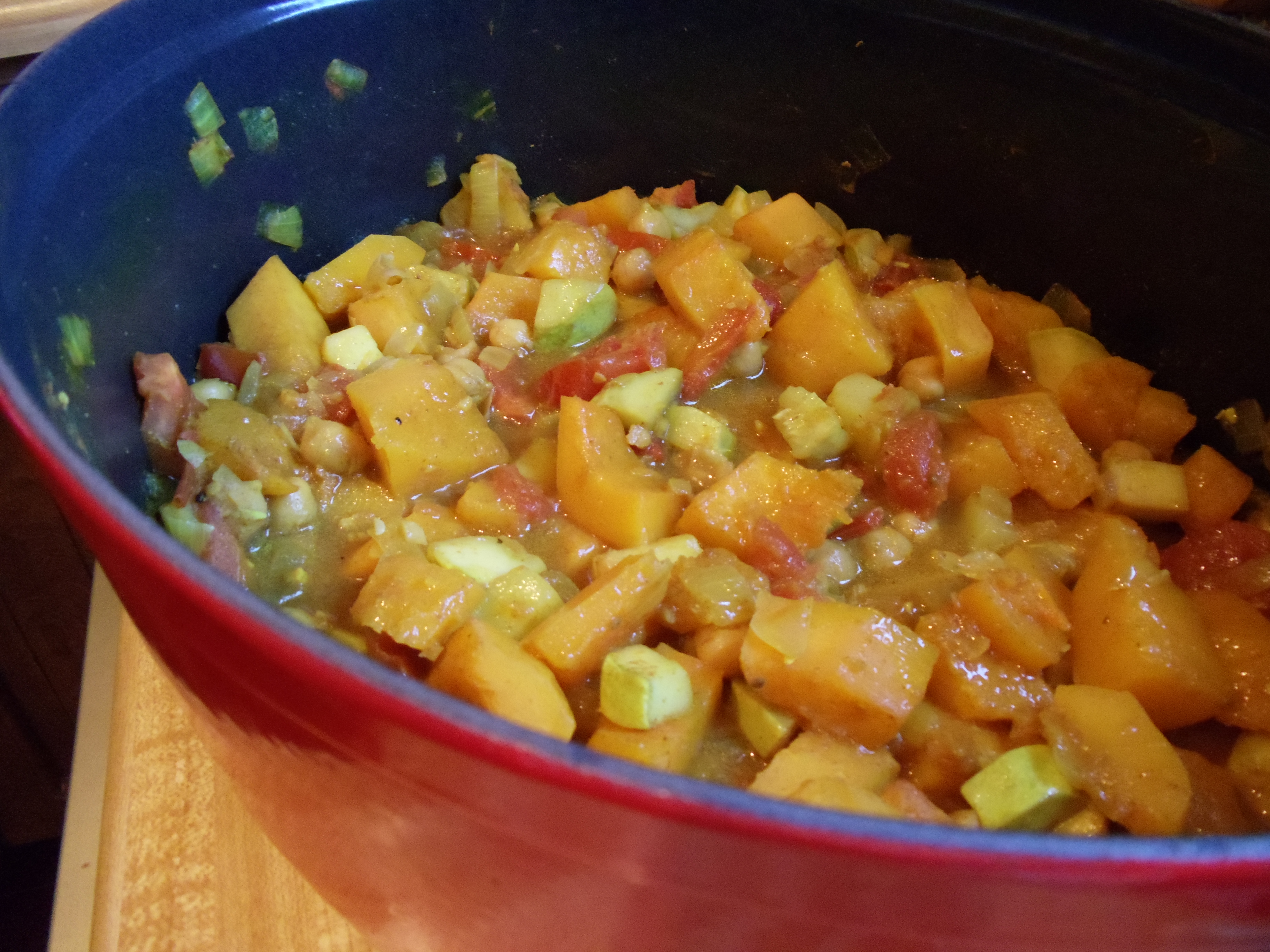 Here’s my new favorite fall fix, slightly sweet with warming spices, with a tang of tomatoes and the savor of legumes. I’ve made this stew with sugar pumpkin, butternut squash, zucchini, and sunburst squash, with fantastic results, and can think of many upcoming variations with carrots, sweet potatoes, yellow crookneck squash, which makes this recipe a keeper, in my books.