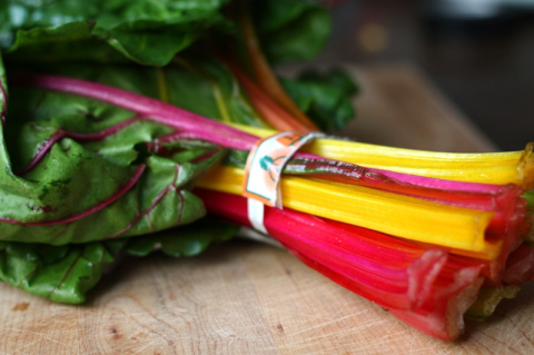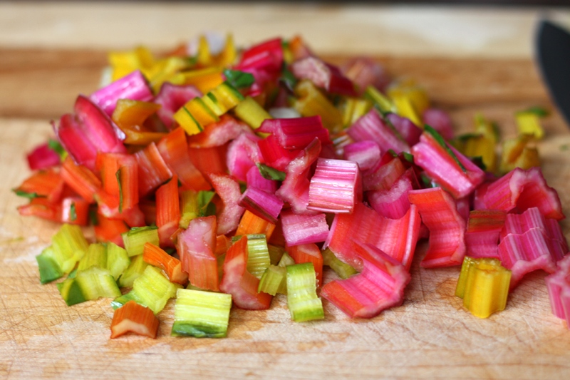 1 bunch rainbow chard, ribs sliced, leaves cut into thin ribbons