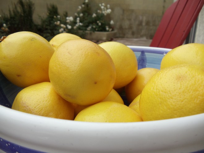 I found these Meyers at the farmers market, and I couldn’t resist buying far more than I needed…the word for that is greed, right? I did, however, resist the urge to tie a feedbag around my nose, drop a lemon in it, and walk around the market inhaling their floral sweetness. Just barely.