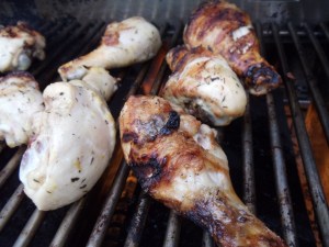 Get a good char on the drumstick before turning, but don’t overcook it on the high flame, you’ll move it to a lower temperature to finish cooking it.