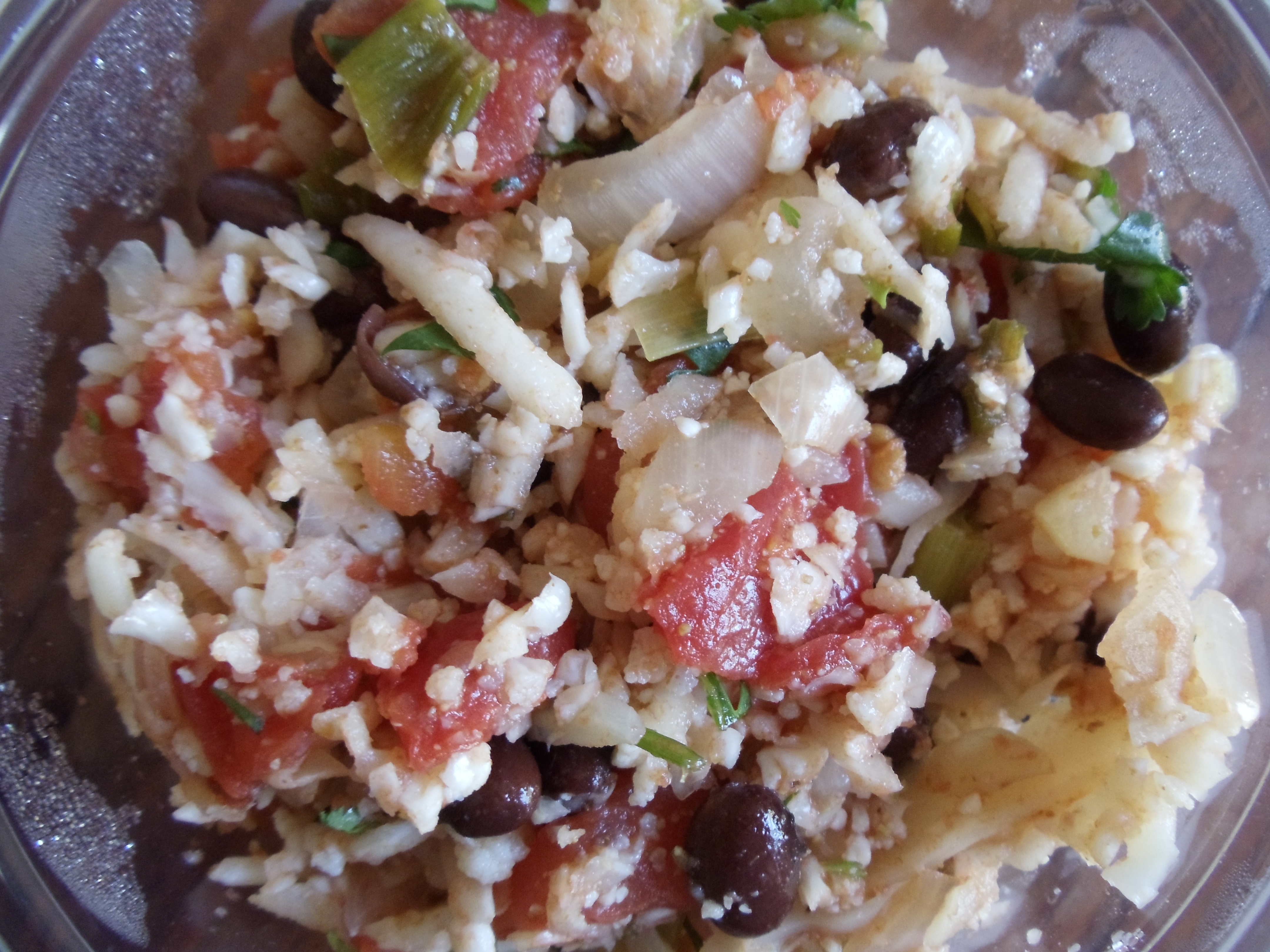 I’d been roasting, roasting and roasting cauliflower, it was time for a change. So I made this Spanish “rice” with black beans, and created a new favorite.