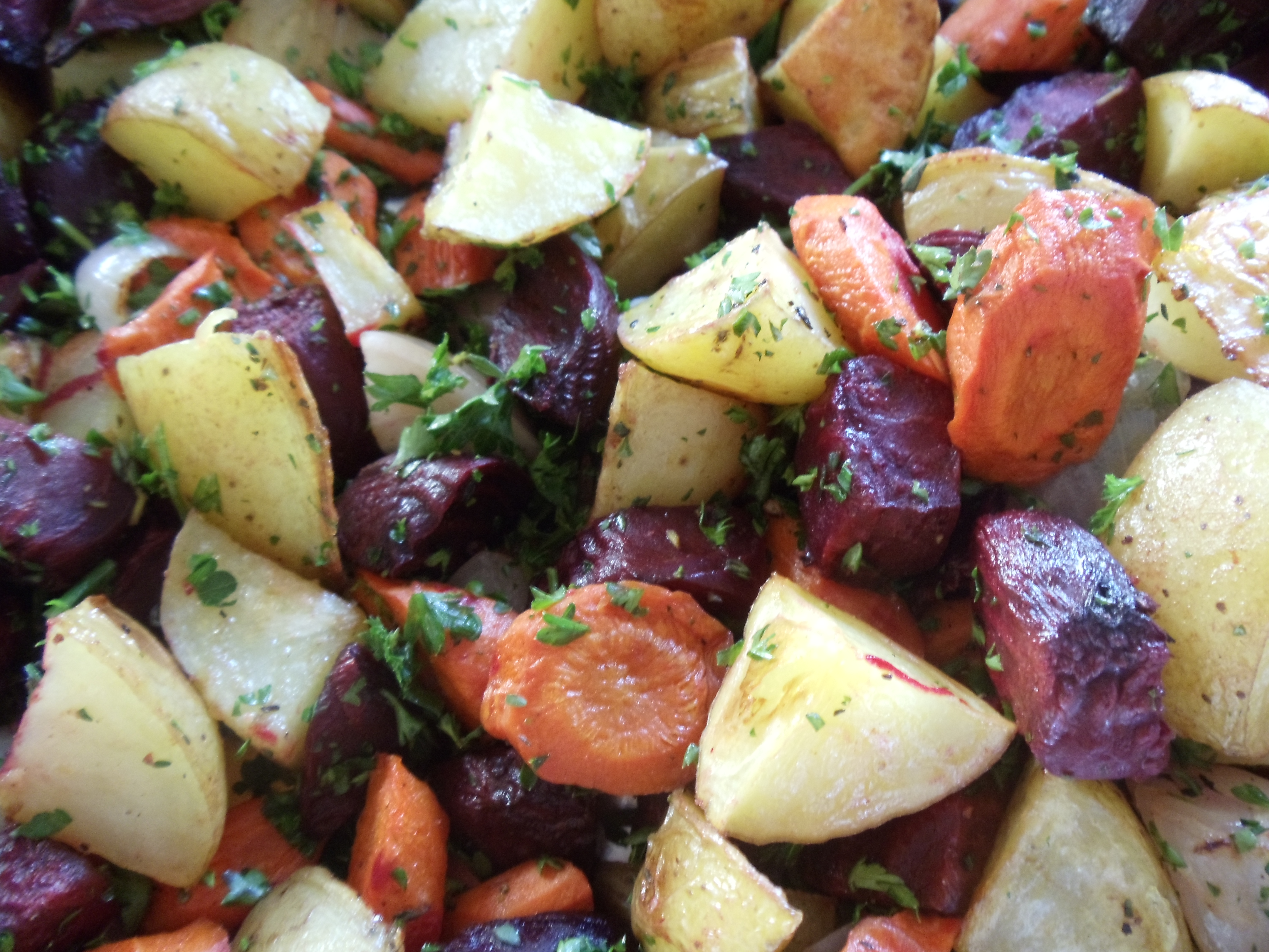 When winter sets in, the best of the local farms, even those with extended growing seasons, will have a predominance of root vegetables to offer. No late tomatoes from the hoop house, no summer squash. In California, all of those crops have gone south to Mexico for the winter. Now we see these earthy, winter jewels in the farmer’s markets and CSA boxes: mature carrots and potatoes, beets of every color, sweet potatoes, parsnips, celery root. Late winter can be monotonous, after you’ve received box after box of root vegetables, and options for cooking them seem to run out, but truthfully, there is one tried-and-true way to prepare the earth’s tubers: roast them.