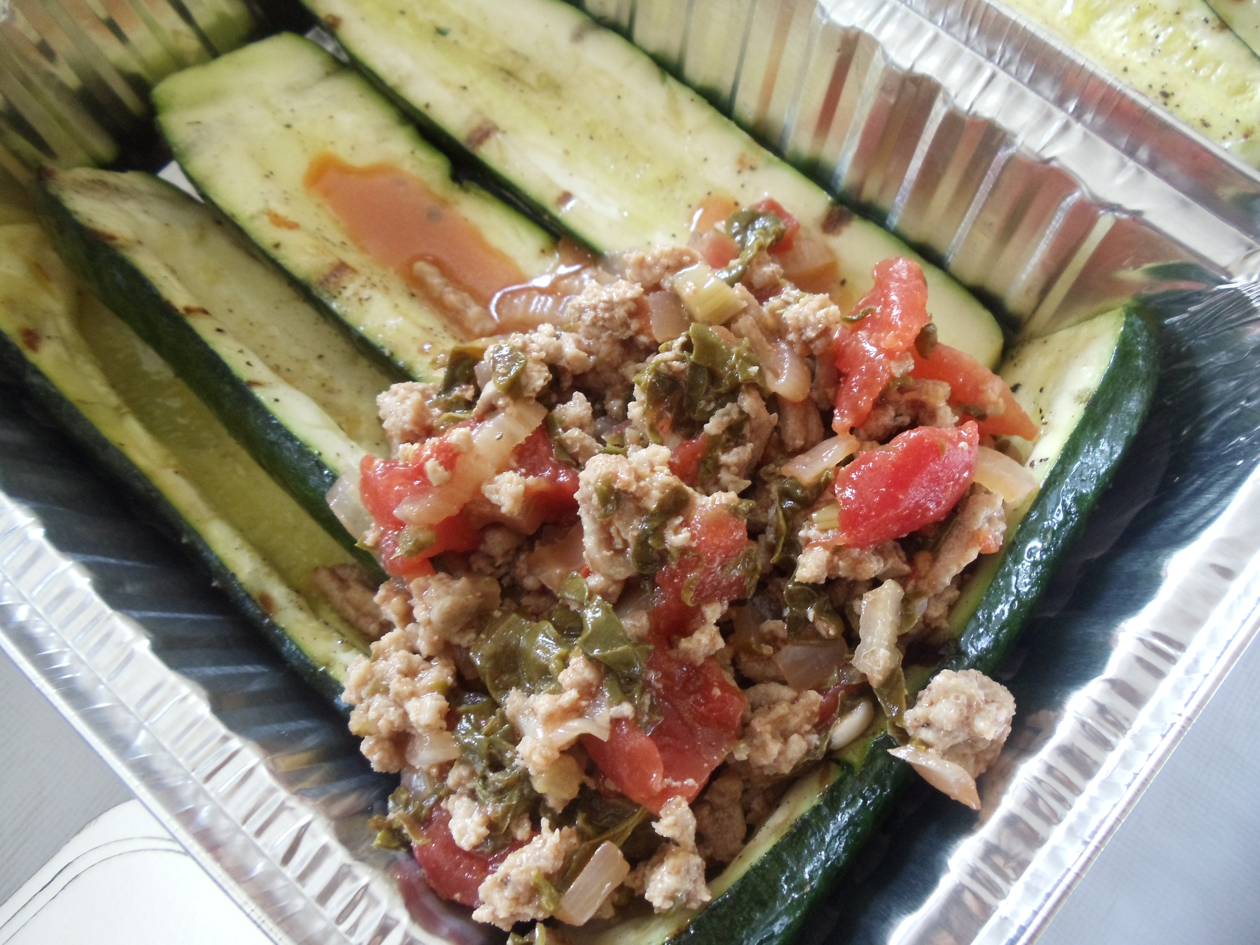 Grilled Zucchini Boats with Rainbow Chard and Turkey